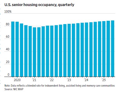 Строительство новых объектов для пожилых замедлилось до исторического минимума, а уровень заселённости и арендные ставки стремительно растут.